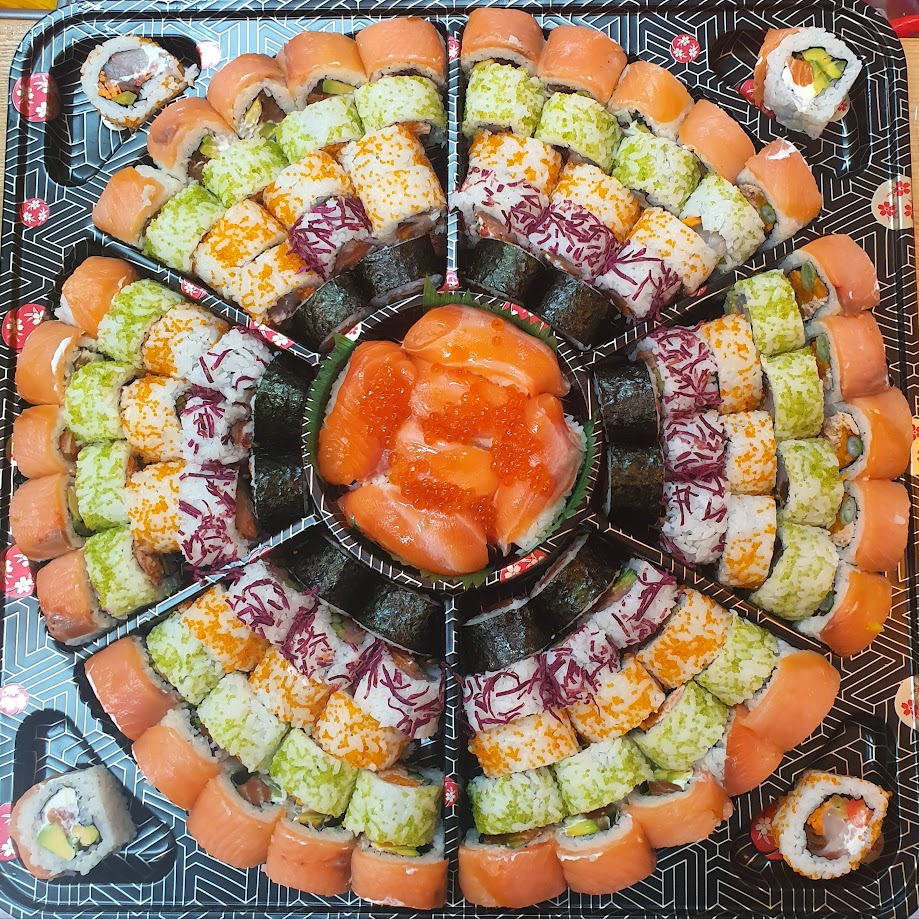 מיקס של 14 רולים עם 6 סוגי דגים.אפוי מעושן ,חי ,דניס, סורימי, וטונה,  גבינה, ירקות וציפוים