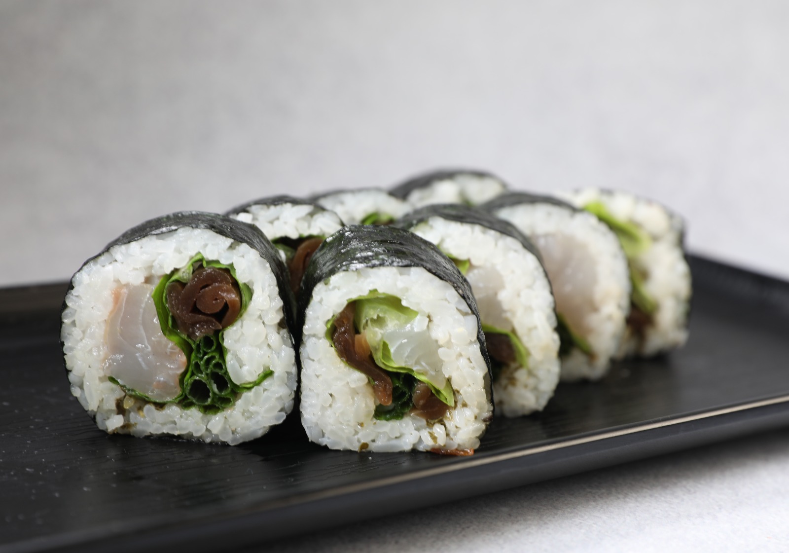 Футо-маки ролл с дорадо,канпио листом салата и масло мяты