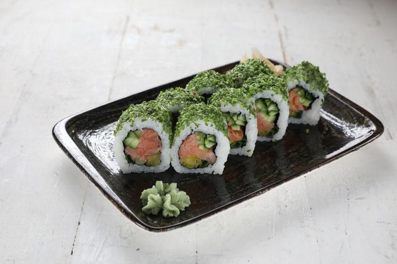 Начинка из холодного копченого лосося, свежего огурца,и ароматного зеленого лука.